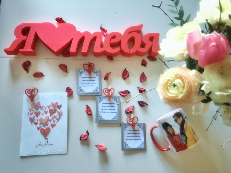 - Купила пенопластовые буквы деревянные дорохо, с русским текстом "Я люблю тебя" тк это был прошлый год, их еще не было у "многогде" ))