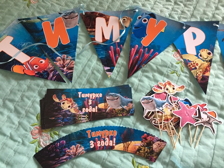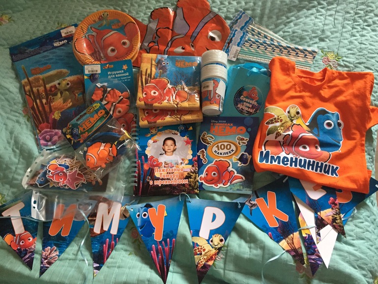 Так как я люблю все делать заранее, готовиться начала ещё летом. Заказала всю бумажную атрибутику, купила одноразовую посуду в стиле Немо (мало ли, вдруг закончится 😅), салфетки, скатерти и пр.