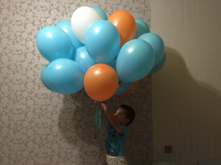 Утром сын проснулся, а вокруг шары. Очень обрадовался, схватил в охапку и носился по всей квартире.