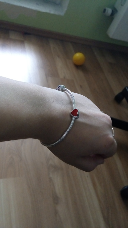 Я,олень, напрочь забыла о 14 февраля,а вот муж постарался. Принес мне а-ля Пандоровский браслет. С шармиком.