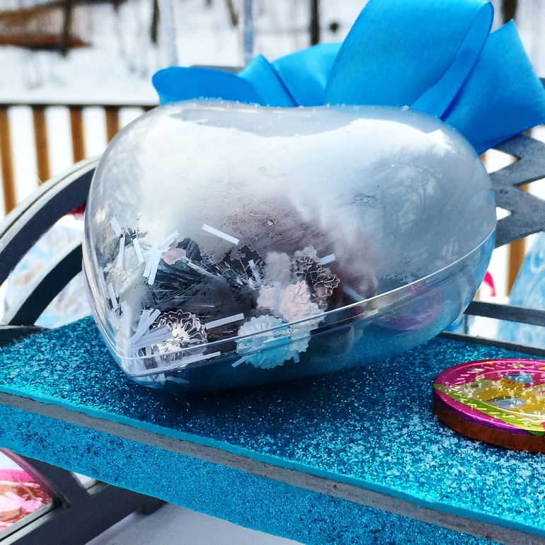 А если растопить его, то оно полно сюрпризов - украшения из кристалликов льда и шишка из волшебного леса.