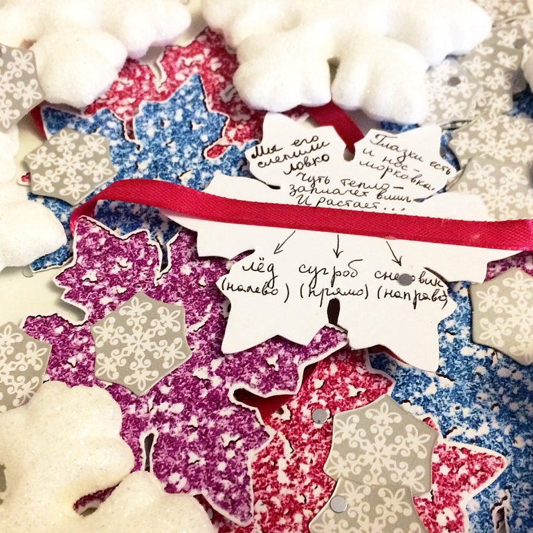 Чтобы найти подарок, она следовала за выпавшими снежинками. Ей надо было разгадать загадки, чтобы выбрать правильные дорожки, покормить лесных зверей...