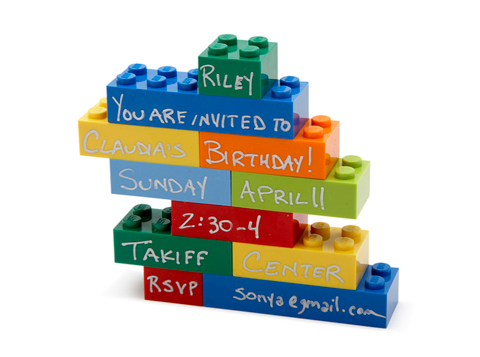 Для начала отправили всем приглашения в виде мини-наборов конструктора. На каждом кубике было написано одно слово, и, собрав конструкцию, гости могли прочитать текст приглашения. Кубики запаковали в специальные пакетики, к которым я прикрепила информацию для родителей.