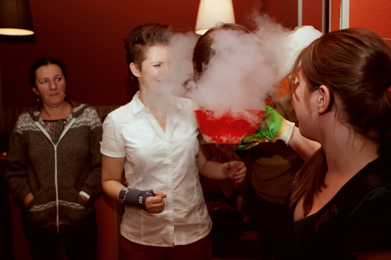 Зато, когда началось химическое шоу, все собрались вместе.