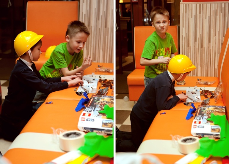 А потом пришло время раскрывать подарки и фанатики, наконец-то, добрались до своего лего. Весь зал кафе, отданный нам, превратился в одну большую стройку. Официанты боялись зайти к нам и наступить на кубики, потому что они были везде. Как после этого мы смогли все детальки привезти домой и не потерять, я даже не представляю.