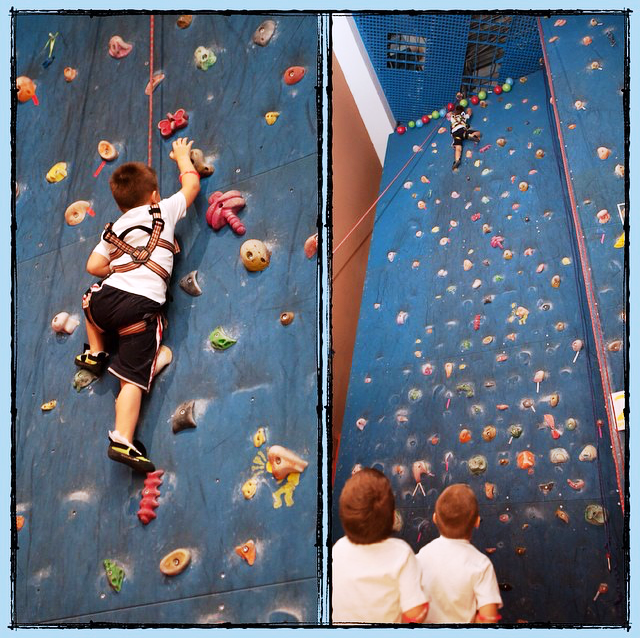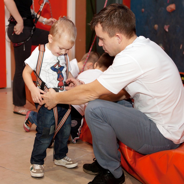Взобраться по стене как настоящий Человек-паук? Нет проблем! И хотя детей страхуют опытные тренеры и подъемы абсолютно безопасны, у нас замирало сердце - как им там наверху?