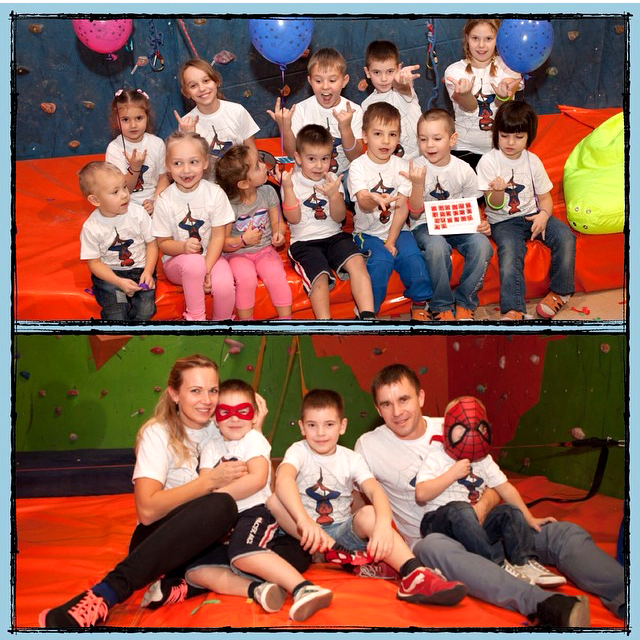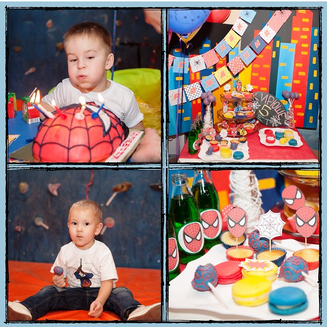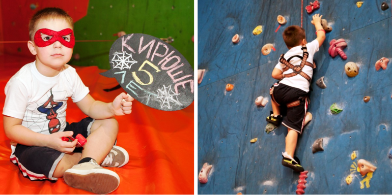 У моей подруги Наташи три замечательных сына. Средний сын, Кирюша, обожает человека-паука. И вот когда ему исполнялось 5 лет, Наташа попросила устроить для него особенный праздник, похожий на день рождения Вовы в батутном центре. Но у меня была идея получше! Я подумала, что человек-паук должен летать и спускаться с крыши на своей паутине, а такое может быть только на скалодроме.