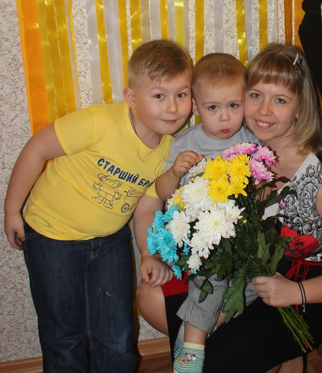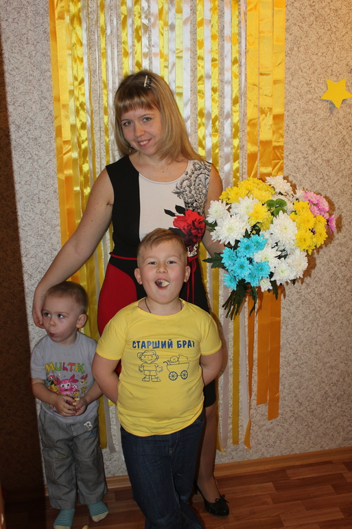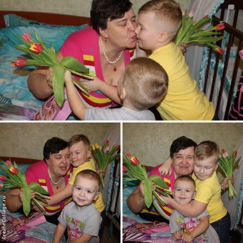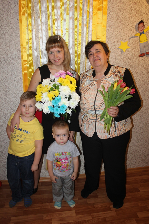 Потом соорудили салатик.. я командовала, а муж делал. Приехала моя мамочка в гости.. Мальчишки бросились на перегонки ее поздравлять, с букетиками и подарками.