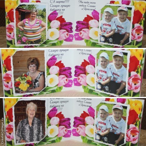 Вот тут огромное спасибо хочу сказать Оксаночке! Теперь у наших бабушек есть такая красота. Бабушкам фотокниги понравились очень сильно. Вчера уже носили на работу, хвастались. Покажу несколько разворотов...