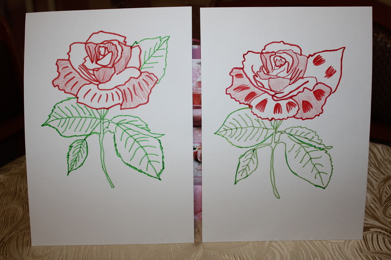 Славуша подарил еще розу... Рисовала конечно я, обводил сам... Потом еще сделал надписи кому какая розочка и блестками украсил.
