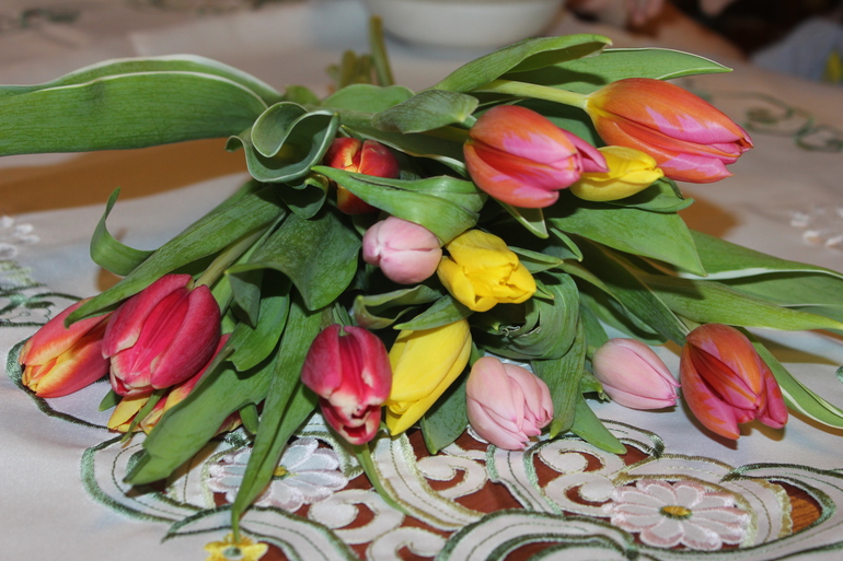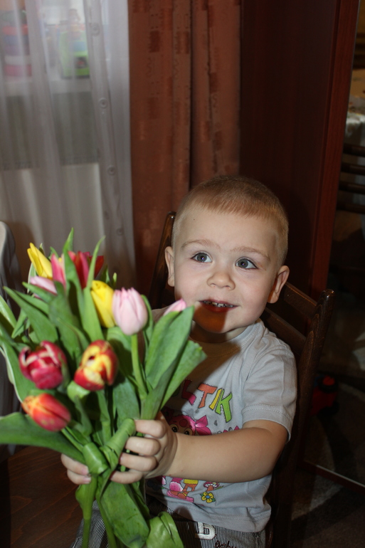 А мое 8 Марта началось с сюрприза... Во-первых мне мальчики дали понежиться в кроватке.. А до этого слышала я как мальчики мои проснулись пораньше и вдвоем ушли... Ну тут и понятно, за цветочками отправились.