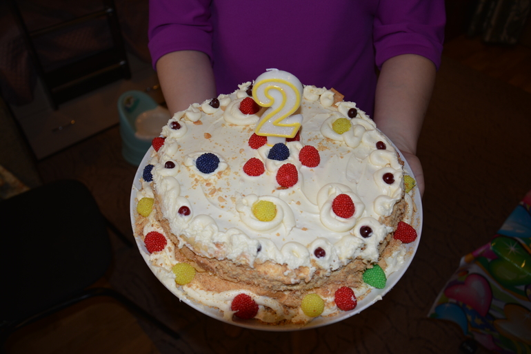 День рождения отмечали с переносом на неделю,ну естественно без накладок мы не можем,но это не для этого поста.Отмечали дома,в кругу семьи.И я поняла что следующий день рождения хочу отметить в каком-нмбудь детском центре,чтобы не заморачиваться.Были почти все родственники,моя подруга с ребенком,кресная Юли.Кресного не было,и неизвестно теперь будет ли вообще приезжать или нет.Успела я все,помогла с готовкой и сервировкой стола мама моя,все были сыты и довольны.Юляшик вообще любит компании,и ей хватало деток ,чтобы повеселиться,особенно радовалась она подаркам.Отдельный пост думаю скоро наваяю я о подарках.Торт кстати испекла моя моя,простенько ,но очень вкусно.Названия у торта нет,самое главное вкуснющих крем.МММММ!Все ,даже дети не могли оторваться от него!