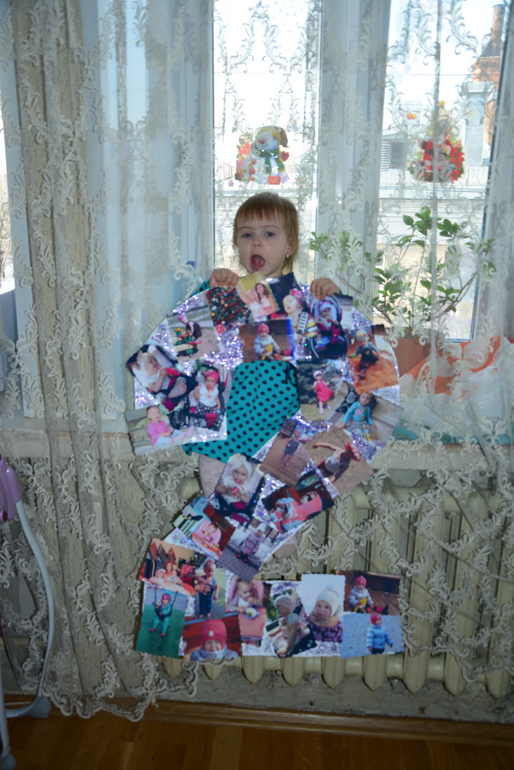 Это сделанная мною цифра 2,имела успех у гостей,все рассматривали на ней фото за второй год жизни Юли!