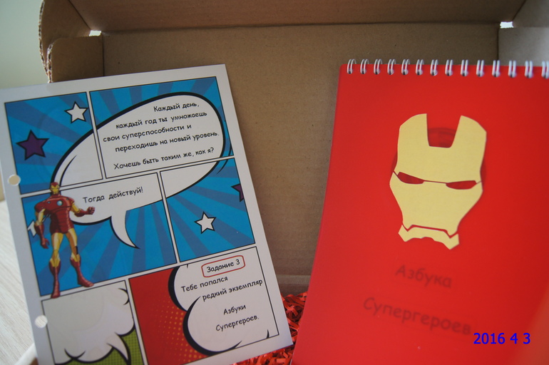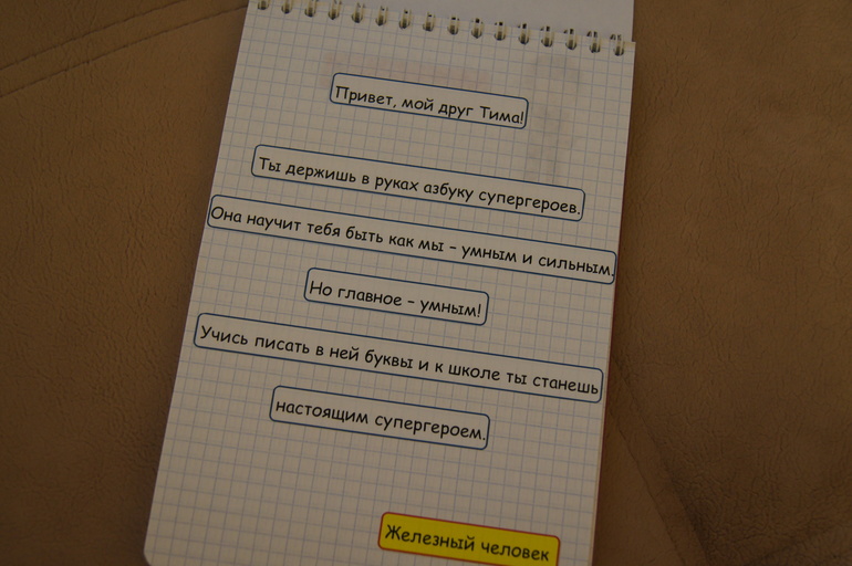 В первый день Железный человек передал Тиме пазл и специальный блокнот, в который мы собирали все письма от Железного Человека