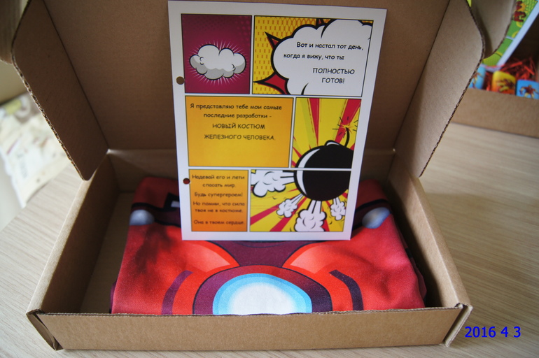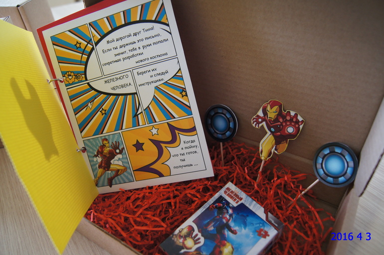 За пять дней до дня рождения Тимофею начали приходить небольшие посылочки от Железного человека. В каждой посылке было письмо-комикс с заданием и небольшим сюрпризом.