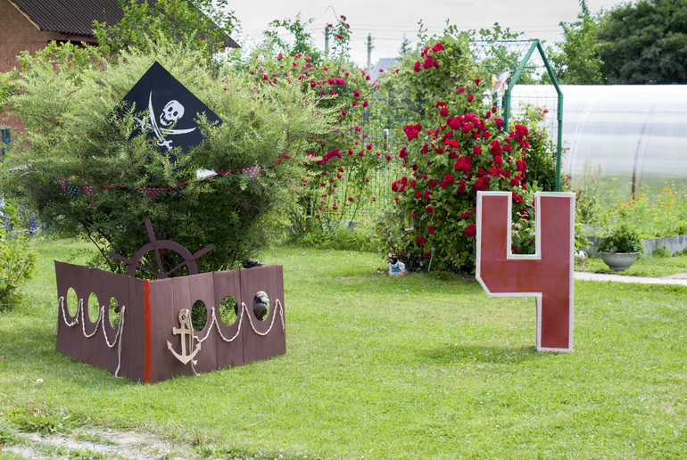 Лето мы проводим на даче, но поскольку она находиться не на берегу моря, решено было преобразить участок в небольшую пиратскую бухту!