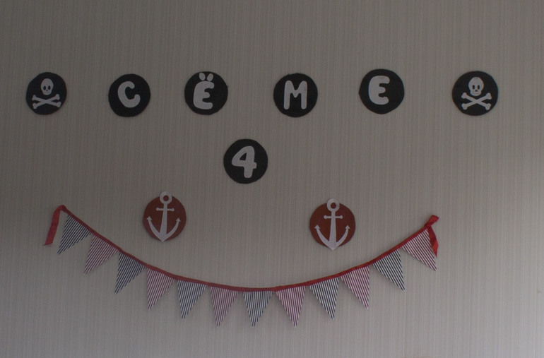 В заключении хочется сказать, что бы Вы, сильно не заморачивались, как я ))) . Судя по опыту, детям всякие мелочи не сильно важны, им нужен антураж и веселье, а будут на столе топперы или на стене гирлянда, это больше взрослым важно и примечательно. По повязке на голову, по палке, если нет сабли, в руки, и вперед, покорять теплые южные моря, бороться со злыми акулами и искать клад. Ну и, конечно же, торт, с десятью свечками, а лучше 10 тортов с 1 свечой, это кому как нравиться