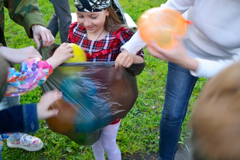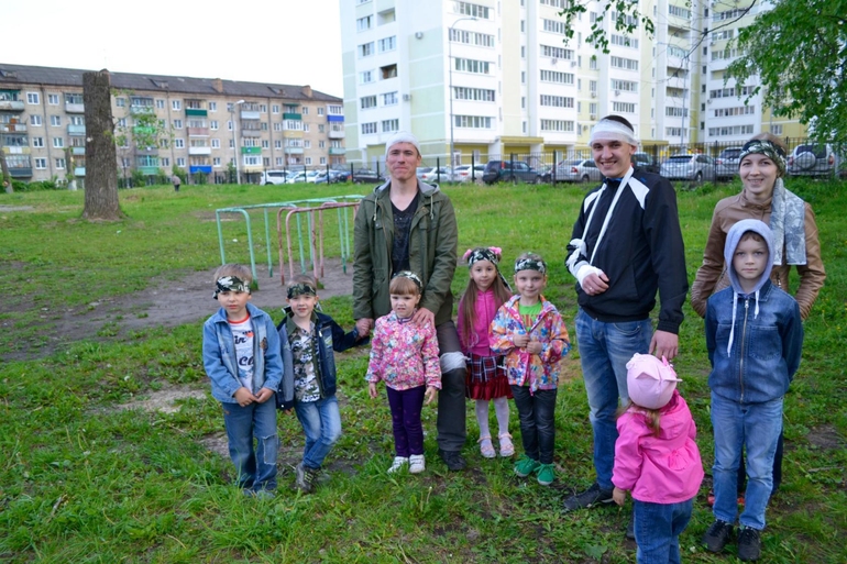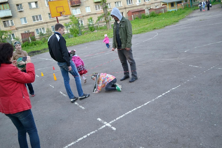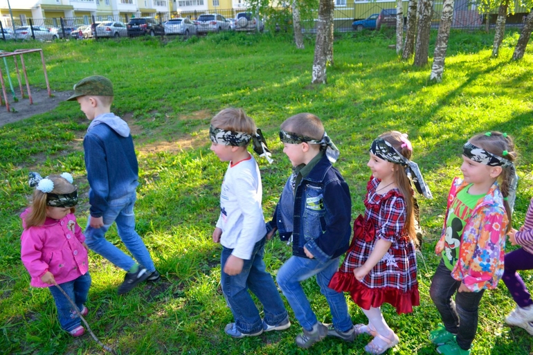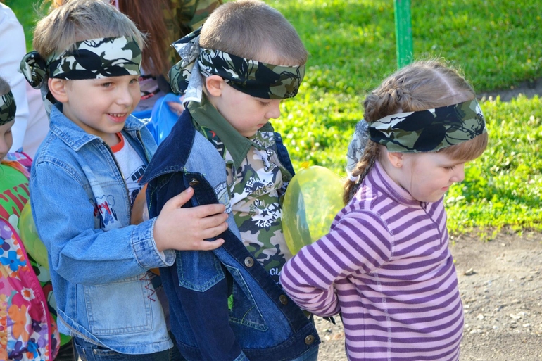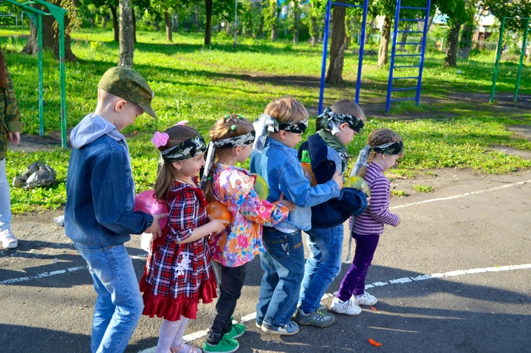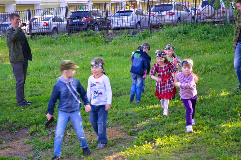 Конкурс Минеры, на деда прикрепили прищепки и дети должны были его "разминировать