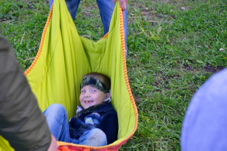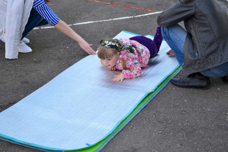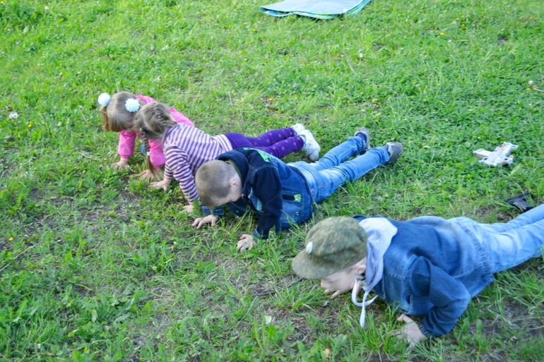 А это "Гусеница" - тоже обыграли как проникновение к врагу)) в конце шарики полопали, как взрывы!