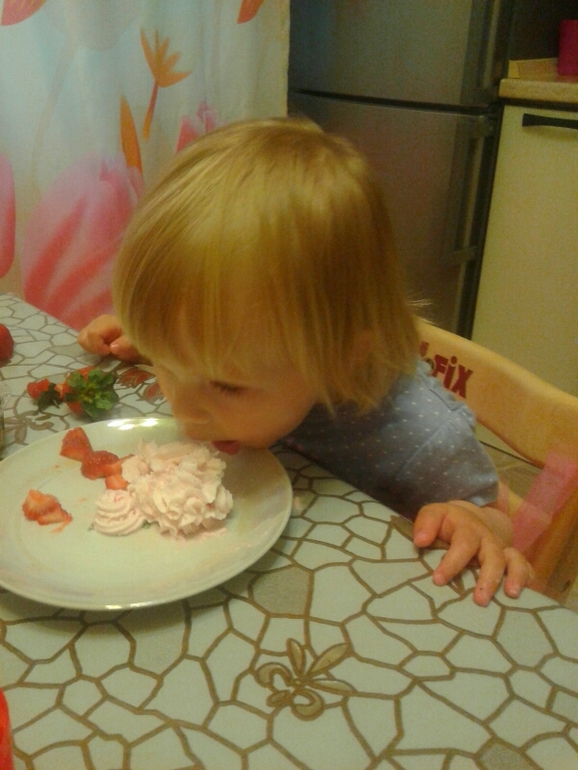 Потом отмечали с малышами,Варя в тот день решила днем не спать,поэтому стол был полупустой))) Что успела то и ели)) Спасли меня взбитые сливки покупные,с фруктами их дети радостно хомячили)) Делала еще тыквенные кексы(украсить не успела),колбаску из печенья,,про мороженое забыла.Все равно было весело,только ни одной фотки путной нет,они так быстро передвигались. Варя нормально продержалась,без капризов,только одеваться не стала,юбку надела сама так и ходила. Ну,и жадничала чуток)))