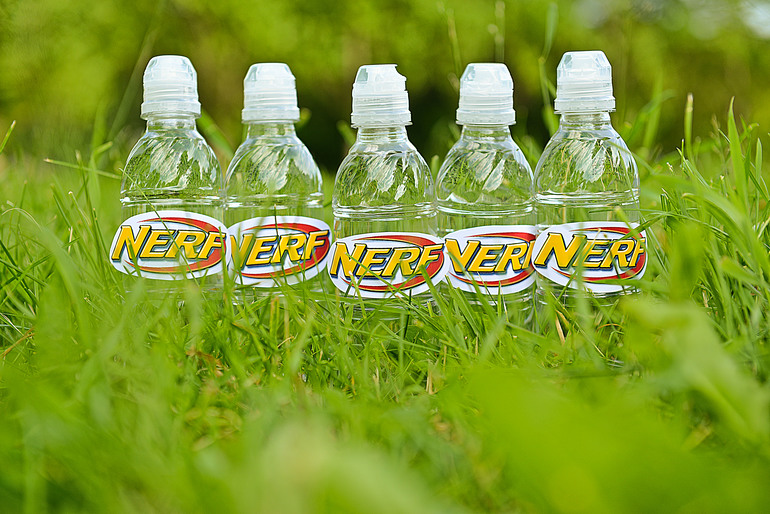 Мой Вовка и его друзья обожают бластеры Нерф, следят за новинками, а патроны раскиданы у нас по всей квартире. И вот как-то сын раскопал в интернете, что производители устраивают праздники для любителей этих игрушек. Привозят набор оружия, огромный комплект патронов и устраивают разные конкурсы. Бесплатно! Мы подали заявку, выбрали день и место. А я сделала этикетки на воду. Совсем ничего не сделать просто не могу.