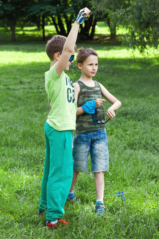 В назначенный день приехали два инструктора. Дети тут же полезли к ним в сумки рассматривать и выбирать себе оружие.