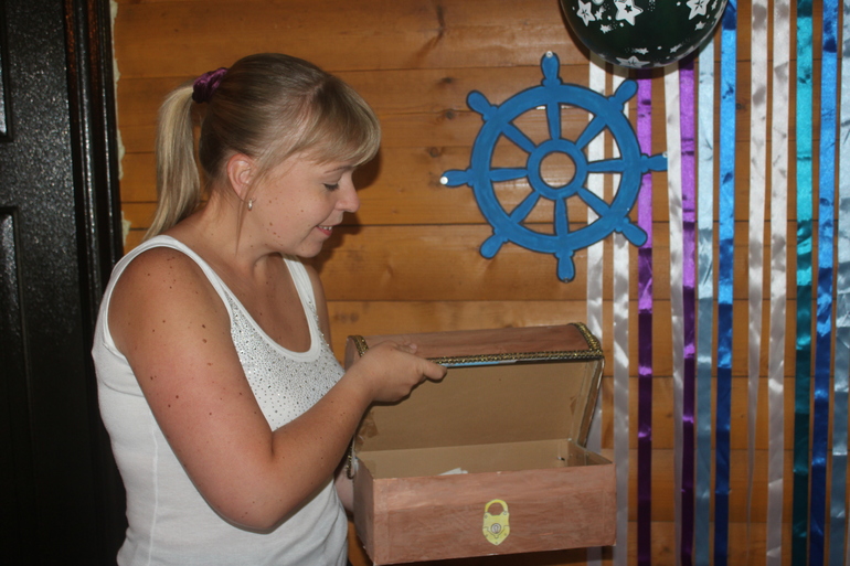 Особо сценария писать не буду. Скажу только, что очень мне пригодился сундучок, он остался еще со Славиного пиратского дня рождения. Там лежали фанты и все подготовительные материалы...