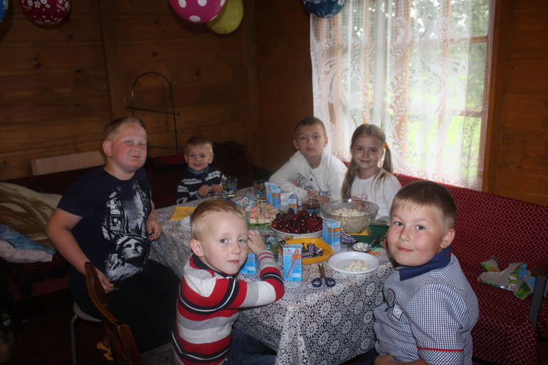 Были ливневые дожди и стало так холодно. На улицу было не сделать и шага. Праздник должен был быть на улице, но мы все перенесли на веранду и получилось все очень даже хорошо.
