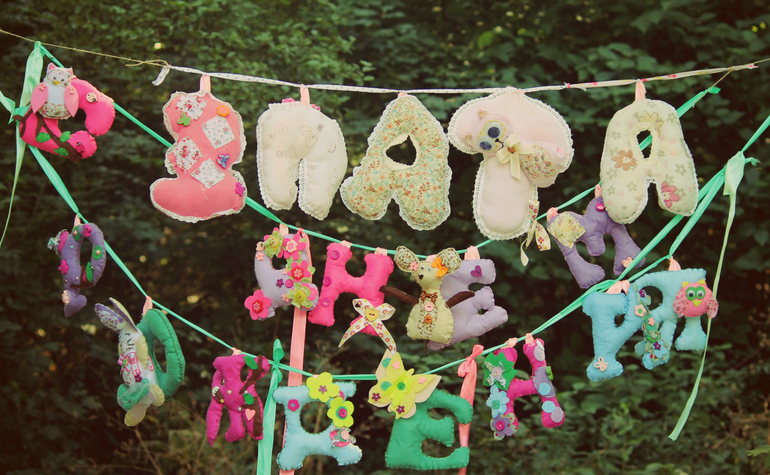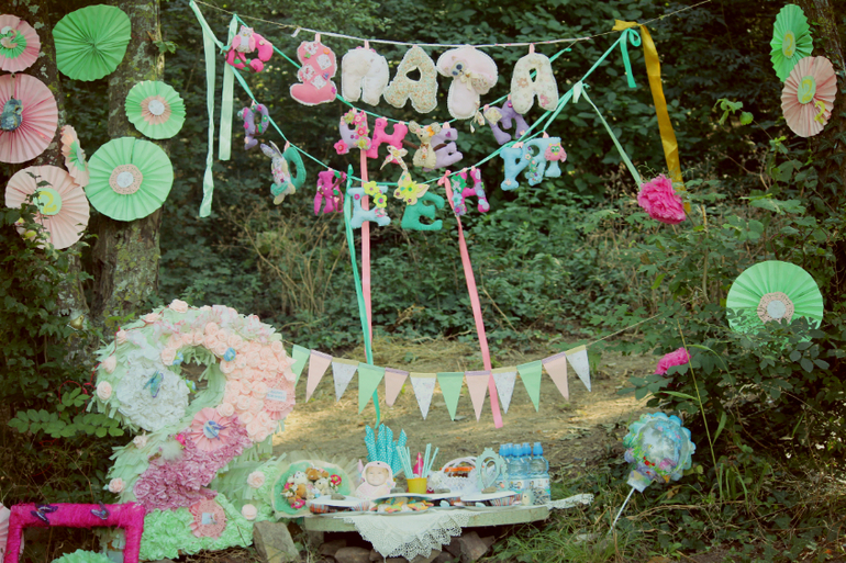 День рождения Детский10.07. нашей малышке стукнуло 2 года. К этому дню я начала подготовку уже за несколько месяцев. За это время я не спеша сшила фетровую гирлянду С Днем Рождения Злата, сшила из фетра маски героев русских народных сказок, а так же сделала различные бумажные украшения веера, помпоны, топперы для капкейка, пиньяту, цвета я выбрала мятные и нежно розовый шебби-шик.