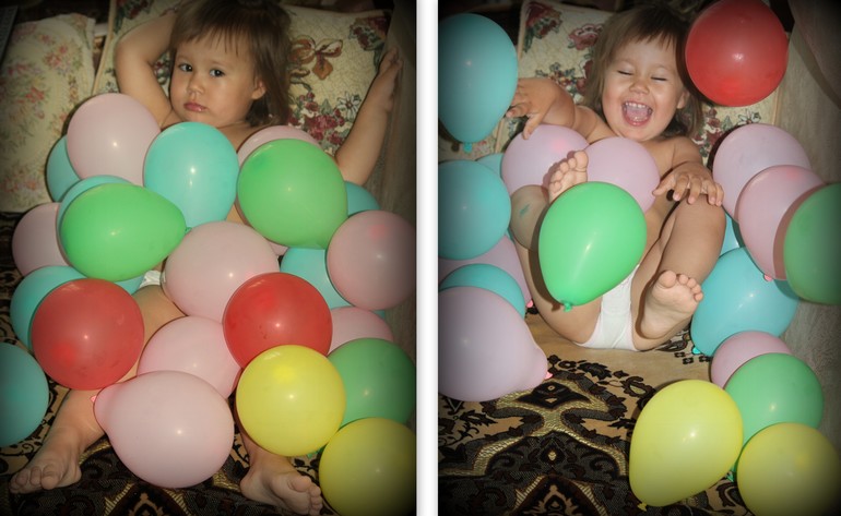 Утром Злату ждал сюрприз в виде много много надутых маленьких шаров