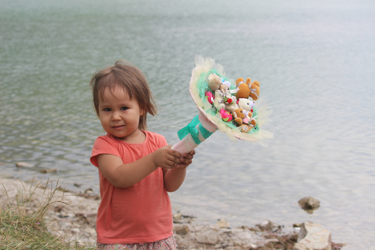 Ее она задувала очень много раз :) "Ещё" она говорила "еще". Потом к задуванию свечки присоединились наши племянники, свечку задували на перегонки кто быстрее, на счет, самое смешное было когда они считали до десяти, Миша, как самый старший, знал счет правильно, считал до 10 и задувал, а Злата хитрюга считала "один, два, восемь, девять" и задувала, и делала это быстро быстро, чтоб никто не успевал