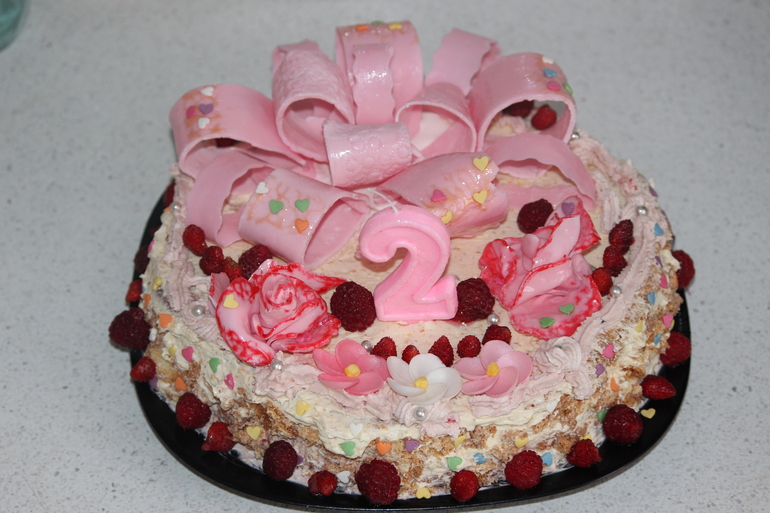 К сожалению наши подарки, заказанные в интернет магазине, немного запоздали и пришли только на следующей неделе после дня рождения, но это ни капли не омрачило наше праздничное настроение. Мы с бабушкой испекли вкусный торт, сверху я его украсила покупной мастикой