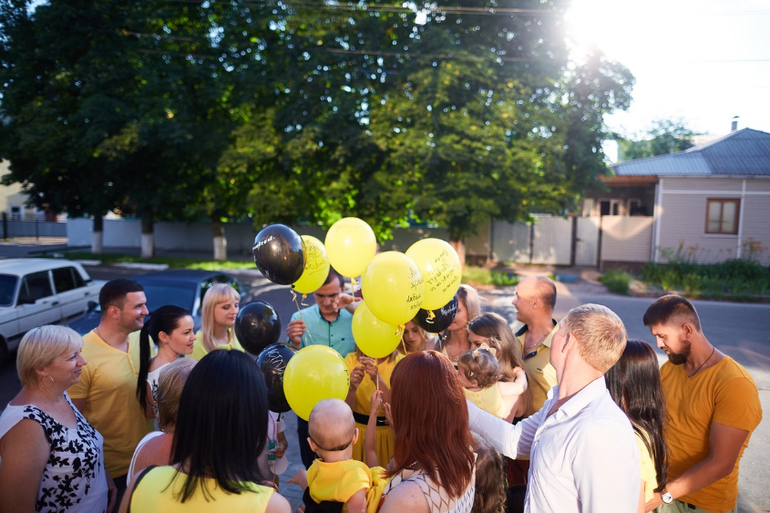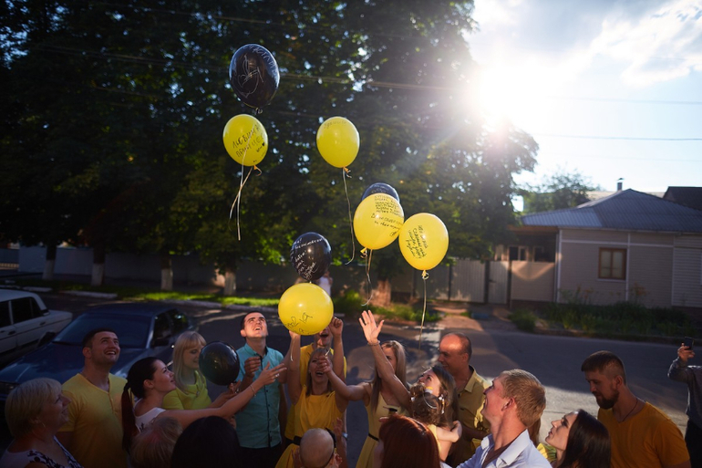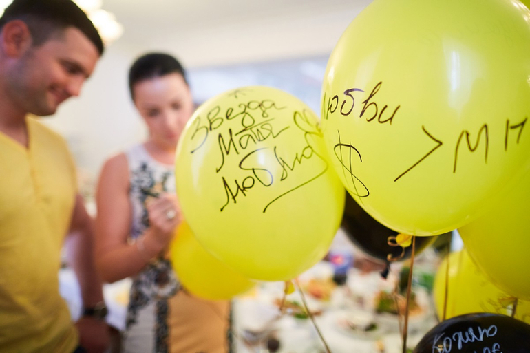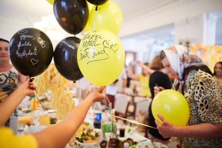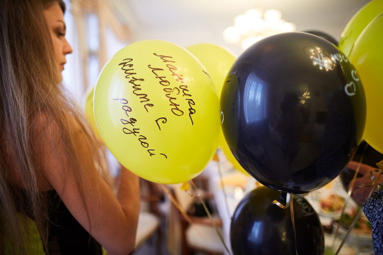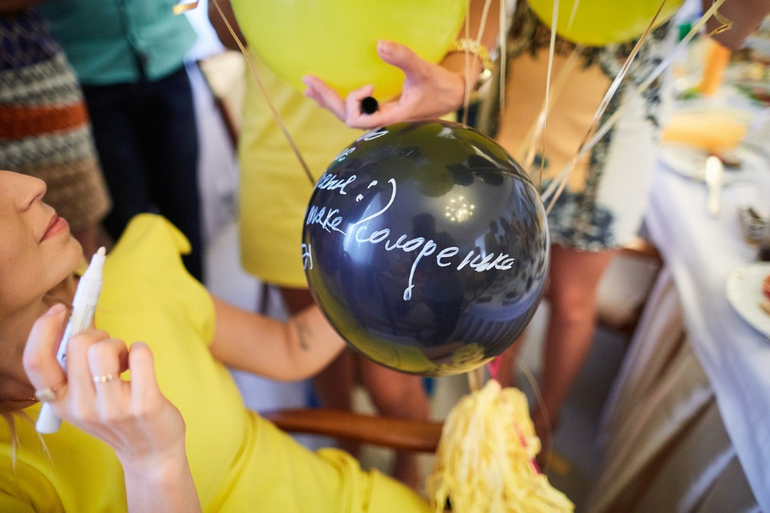 На воздушных шариках каждый гость оставил пожелание и комплимент Маюше, а потом мы все вместе выпустили эти шарики в небо