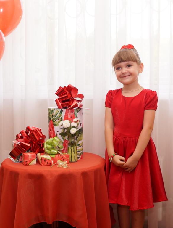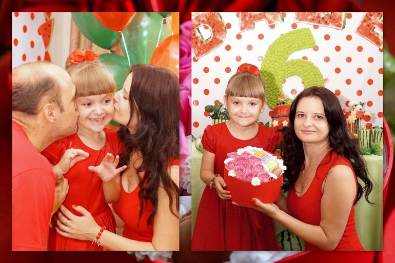 Я радостная и довольная, да! И не только по случаю шестилетия дочери, но и из-за того, что влезла в свое раритетное красное платье (кстати, когда придумала праздник, сразу вспомнила про него и переживала, что оно не подойдет). Я ведь его покупала 17 лет назад! 17!!! Тогда я была тростинкой с ярко выраженной талией и оно сидело идеально, а сейчас пошло складками от напряга да и я в нем, как шарпейчик. Но влезла же!