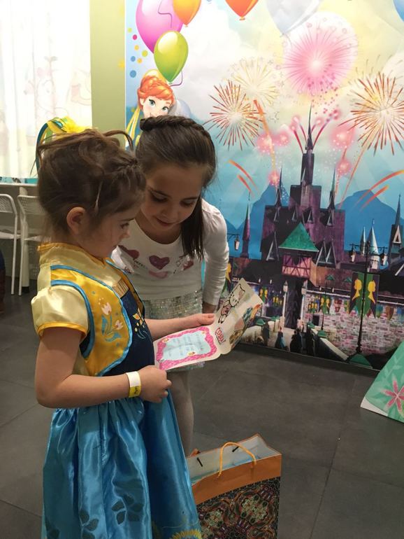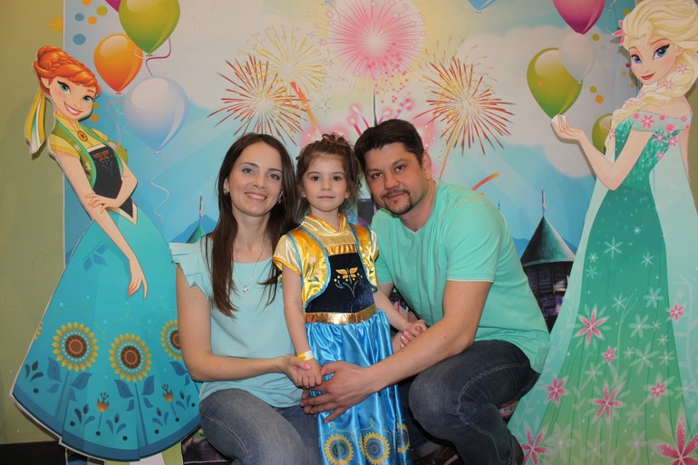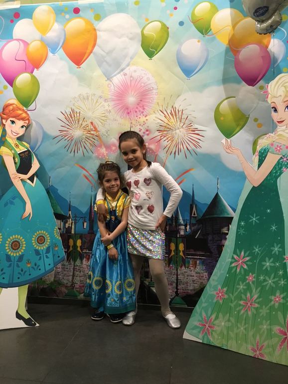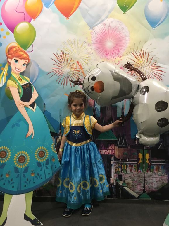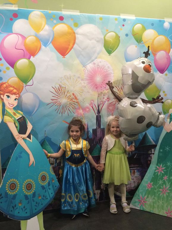 Ну и ещё один важный момент, это украшение помещения, которое мы тоже долго готовили всей семьёй: невестка делала макет, мама помогала распечатывать, а мы с мужем монтировали: фотозона со сказочным замком, где жили принцессы, размером 1,5 на 2 м и ростовые фигурки Эльзы и Анны по 1,5 м в высоту ( стоило сделать см на 20 ниже, к слову 🙈). Также для фотозоны мы купили гелиевый шарик Олофа, чтобы было кого за ручку подержать :) Дочка, да и все девочки, конечно, были в восторге от таких принцесс, ну и память от праздника на таких фото осталась у всех гостей самая замечательная!
