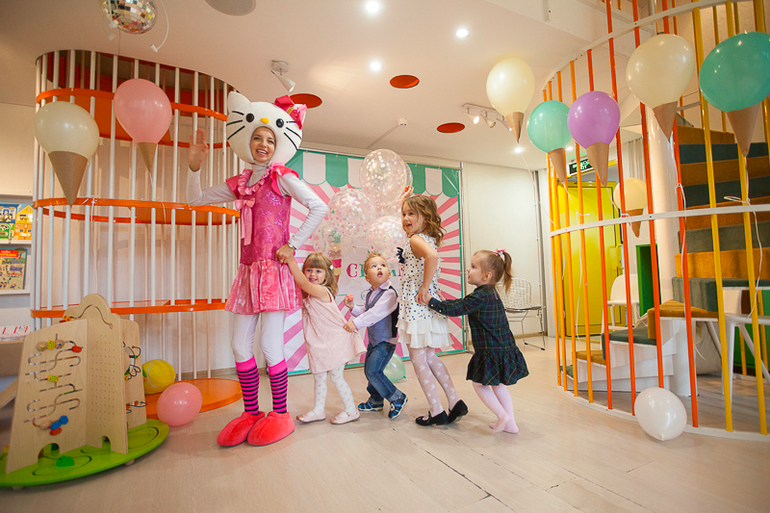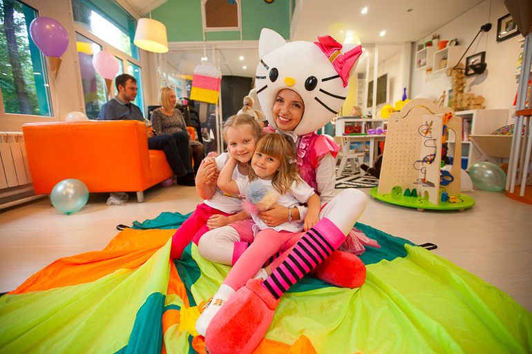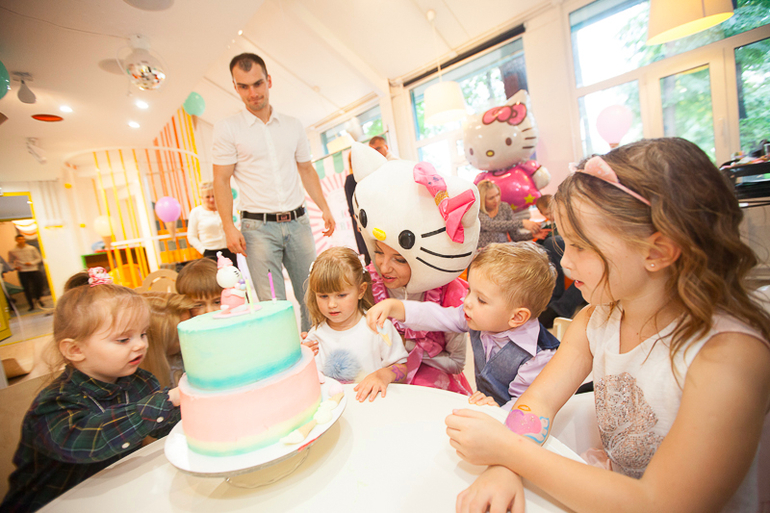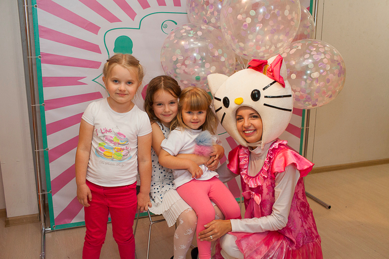 Потом пришла наша Хеллоу Китти и наши детки были заняты все ближайшие 2 часа праздника, что они делали с ней я увидела только на фото, т.к. взрослые спокойно могли выпить по бокалу шампанского за здоровье малышки Киры. Мне очень понравилась программа, разнообразные конкурсы, аквагрим, шарики, разные аксессуары и пр.