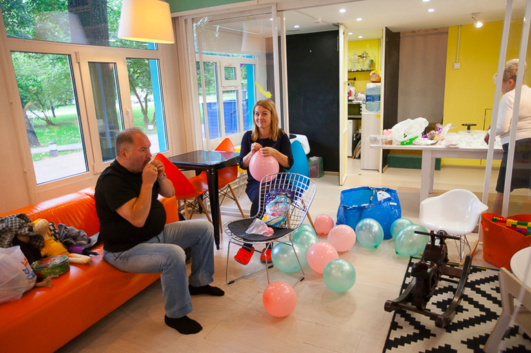 Место проведения: мимидомик в саду имени Баумана. Давно нравилось мне это место - очень душевный детский домик с чердачками. Светлое помещение, яркое, много игрушек, милый персонал и место чудесное. С погодой правда не совсем повезло, т.к. можно было что-нибудь устроить и на улице.