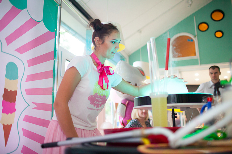 Здравствуйте! Очень все классно у вас, все продумано до мелочей. Аж самой захотелось устроить такой праздник дочке. Если не сложно напишите где вы покупали атрибутику? и скажите тунички ваши с дочкой с мороженкой и помпошками на заказ делали?