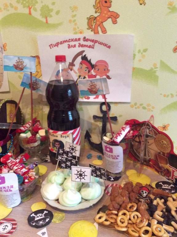 забыла сказать тарелки, стаканы все как всегда в теме пиратов.