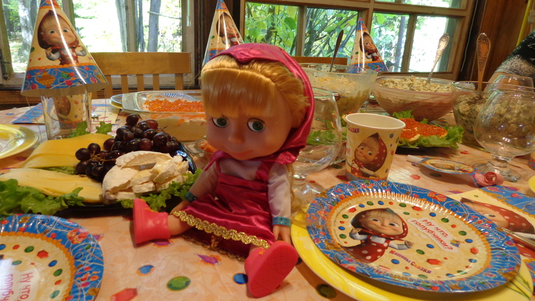 Наш Костя обожает Машу и Медведя. Пришлось подарить ему Машу) Теперь она ему говорит и поет))