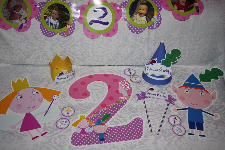 День рождения ДетскийСкоро доченьке 5 лет))) Хочу устроить праздник в стиле "Маленькое королевство Бена и Холли". Планирую большинство атрибутики сделать своими руками. Прошу помощи и советов. Готовых наборов по данной теме я нигде не нашла. Одноразовую посуду буду покупать просто с цветочным рисунком на зеленом фоне. Мне нужны приглашения, топперы, фон для кэнди-бара + фигурки Бена , Холли и Гастона размером приблизительно А4.