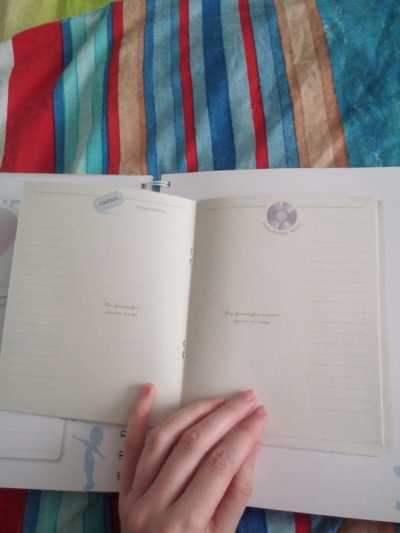 1 часть - это фотографии. Сначала метрика, пото по развороту на фото + описание месяца (умелки, события, рост и все), последний разворот что-то вроде постера достижений - что любит и не любит, умеет к году.