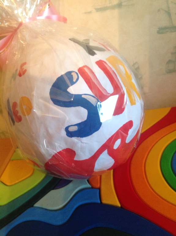 Доделывала уже с утра, сделала прорезь от отверстия сверху, чтоб поместить туда подарок(подарочная карта в магазин игрушек) И потом шовчик доклеила бумагой и снова просушила.