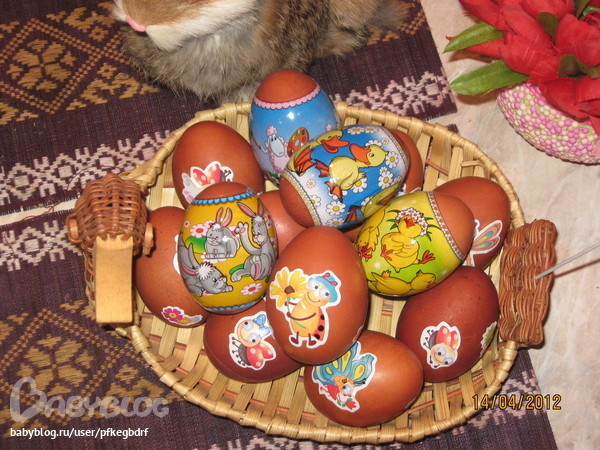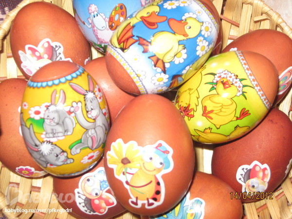 Всвязи с проблемами и постоянно некогда...Вот так вчера ночью я перекрасила яички:)