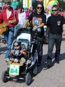 КонкурсыУ нас в городе уже несколько лет устраивают порад колясок! Вот в этом году и мы решили поучаствовать! Наша тема "Байкеры"!!!))) С нарядами определились, у меня будет топ-корсет в заклёпках, кожанная юбка, сапоги-ботфорты, перчатки с обрезанными пальцами! Мыж в кожанных штанах, черной футболке, кожанной жилетке, на голове бандана или кепка! Малышке хочу пошить комбинезон или их кожи, или из ткани под кожу, бандану на голову! К коляске муж будет прикреплять руль с фарой и колесо, сиденье обтяну черной тканью, ну и эмблему "харлея" где-то прицепим! Вот мои картинки вдохновлялки найденные на просторах интернета: