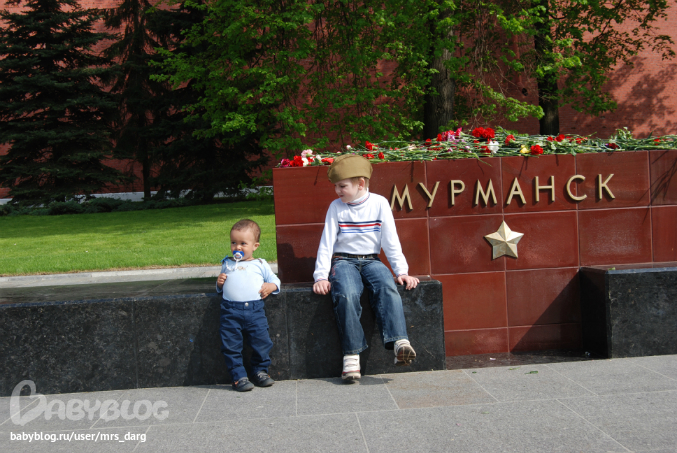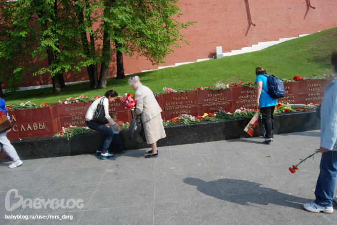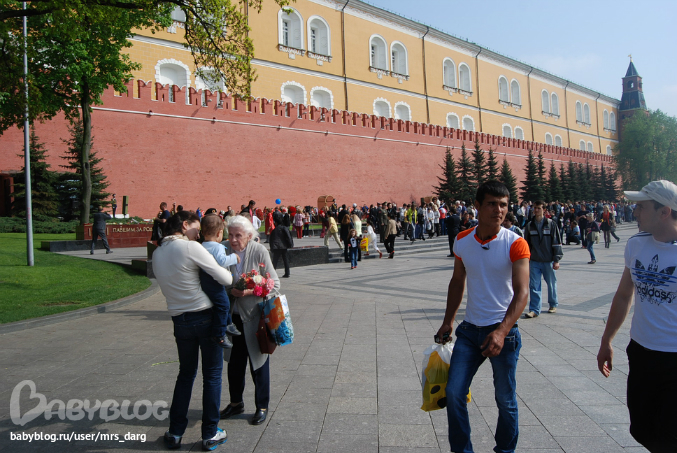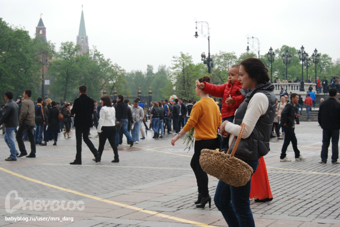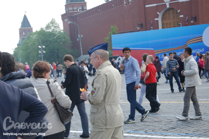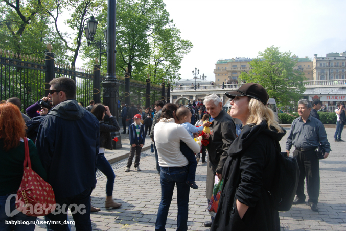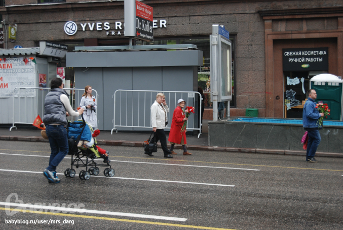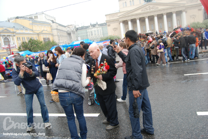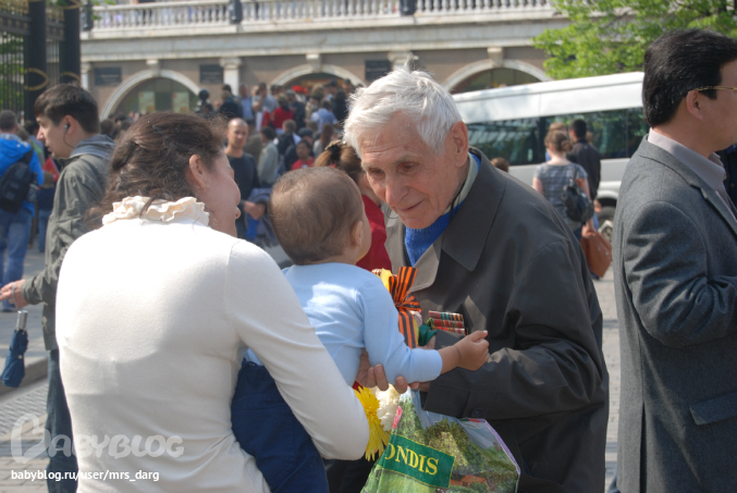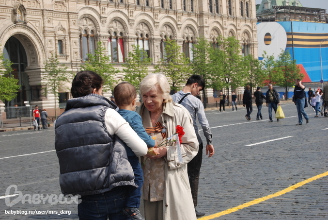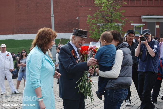 Муж с дочей были в Ялте, а мы с сыночком(1 годик и почти 4 месяца) и нашей бабушкой поехали на красную площадь поздравлять ветеранов.