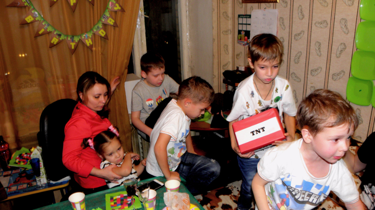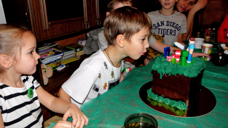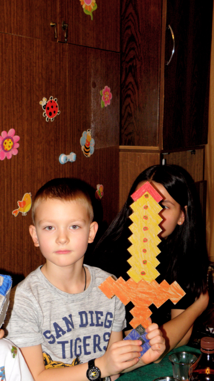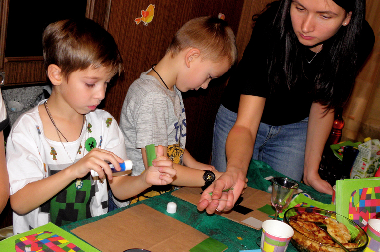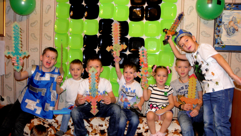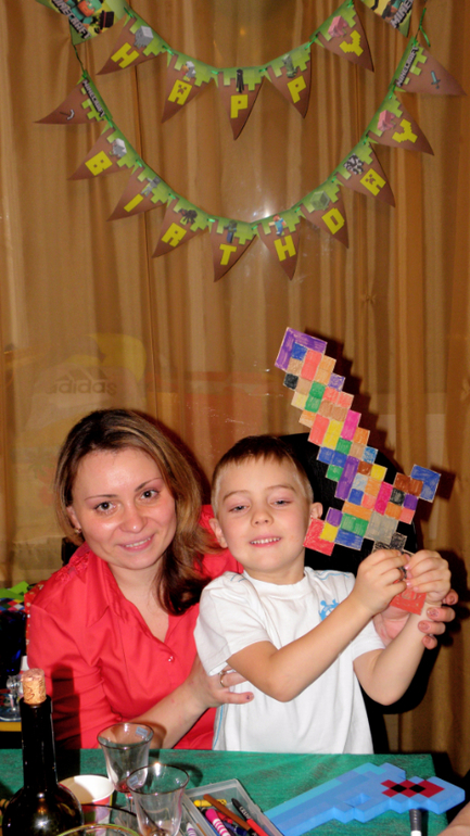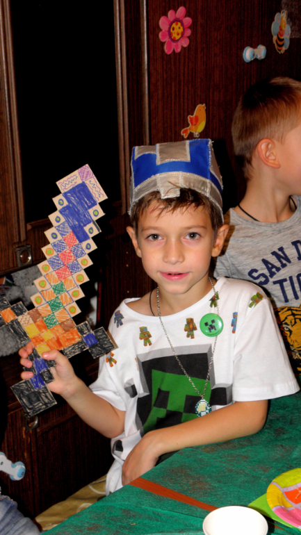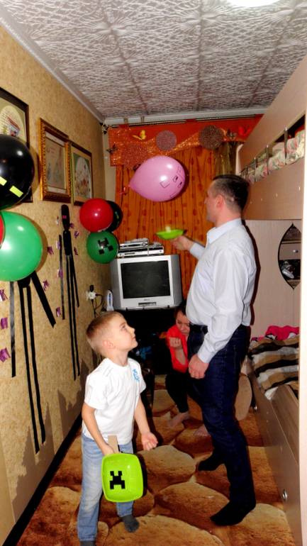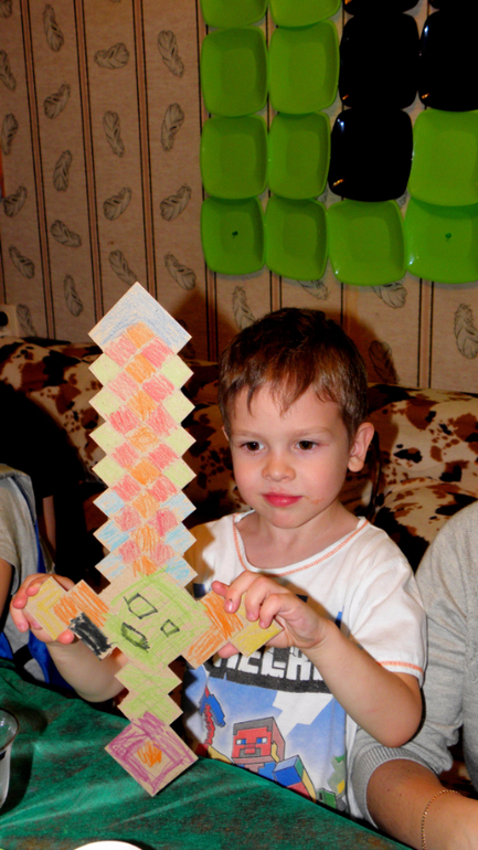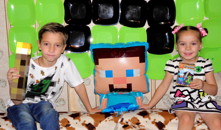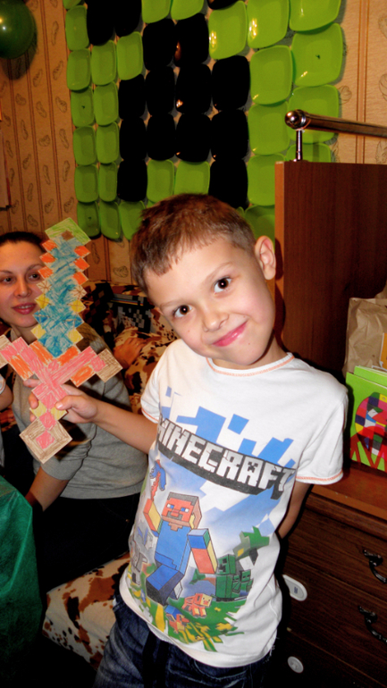 День рождения ДетскийВот и прошел наш долгожданный для сына праздник,весь год его ждал и мучил меня вопросами) Сыну исполнилось 7 лет, в этом году стал фанатом игры Майнкрафт и поэтому с выбором темы ДР проблем не было) В интернете оказалось не мало идей по поводу сценария и я быстренько все организовала,вообще масштабно праздновать не планировали,поэтому ДР был скромен по бюджету,но не менее интересным от этого надеюсь) Детям все понравилось,взрослые тоже не отдыхали и были задействованы,не уверена что они были этому сильно рады) Но главное это ведь настроение праздника и мне вроде это удалось)