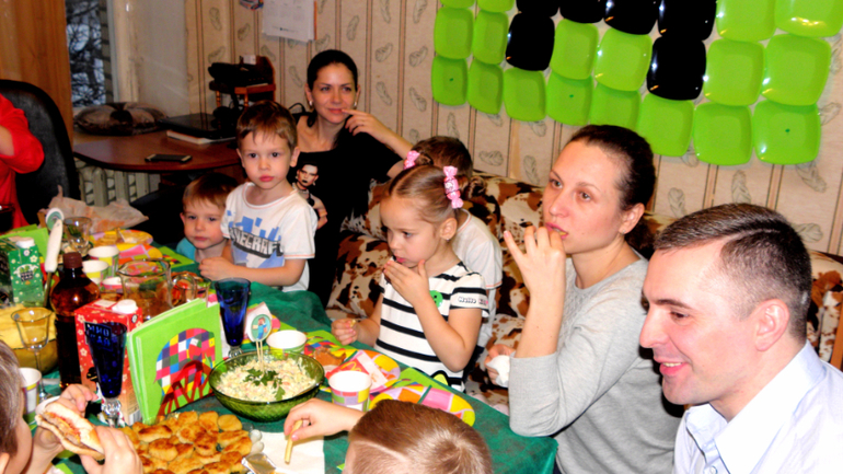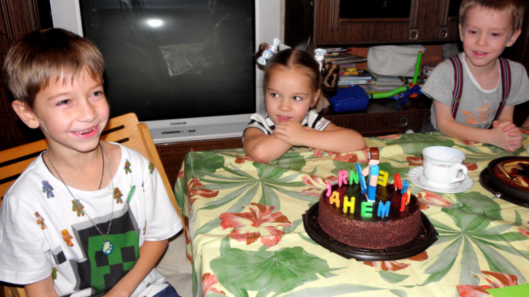 На День Рождения Матвей пригласил самых близких своих друзей) Стол решил сделать двойным,для детей был куплен Макдональдс (вредно,но хоть посидели и поели) и взрослым
