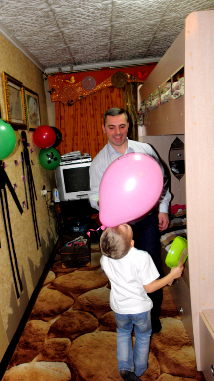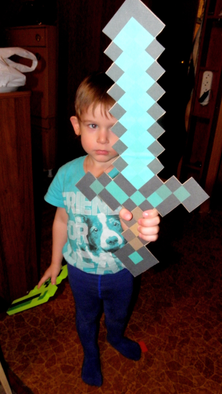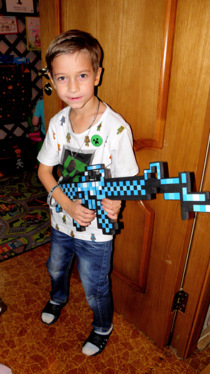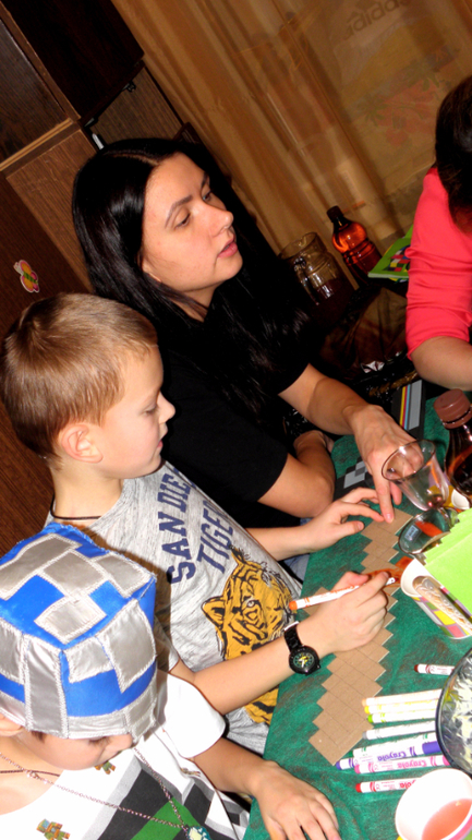 Вечером пришли поздравить с подарками бабушка с дедушкой и подарили ему его маленькую мечту,факел Майнкрафт) Так же бабушка сшила ему накидку и шлем,они будут фигурировать ниже в фотках) В общем Матюха был счастлив очень и уже в предвкушении ждал следующего дня,когда придут его друзья на ДР,так как наш день выпал на пятницу)