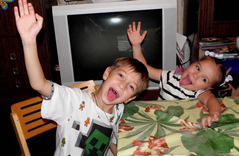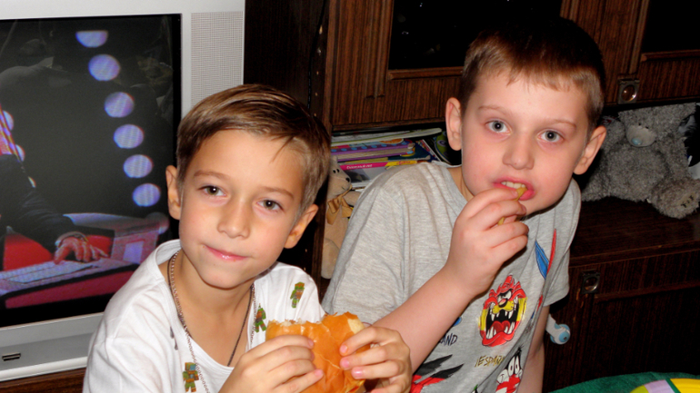 Как только принесли Макдак,все дети тут же сели за стол и с удовольствием поели)
